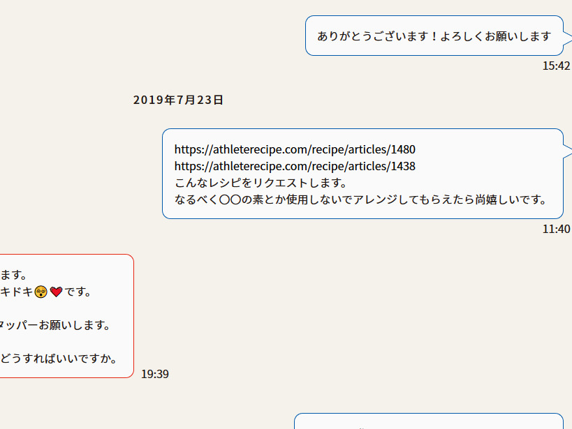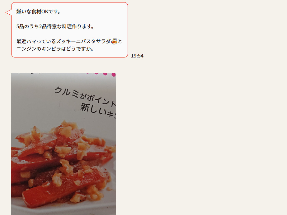 メッセージでのやり取りの際、こんな料理がいいなとリクエストがあるならレシピサイトからリンクを貼ると具体的に伝わってGood!