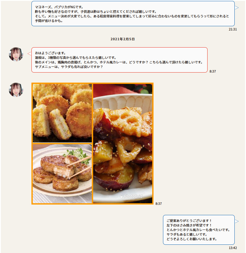 利用シーンを伝えることで、ママンがお弁当に向かない食材は避ける・・・といったように、機転をきかせてメニューを決めてくれますよ!