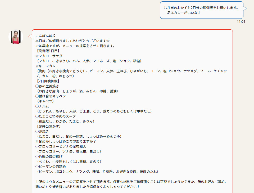 2日分の晩ごはんとお弁当おかずをリクエストし、